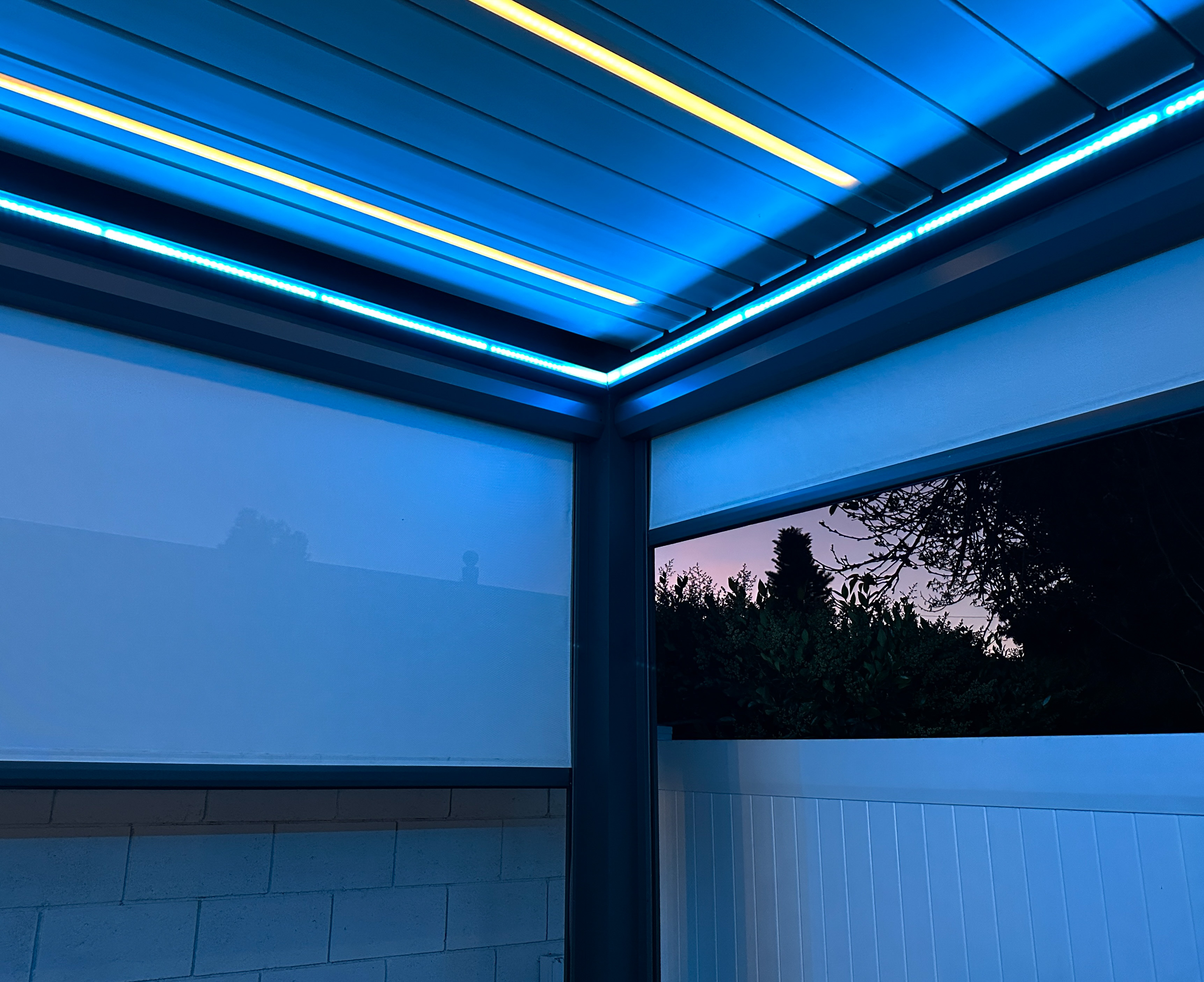 From hot summers to coastal breezes, our powder-coated aluminum frame with PVDF finish is built to last. When closed, the louvers direct rain into hidden gutters and down the posts — keeping your furniture dry and your patio ready year-round.